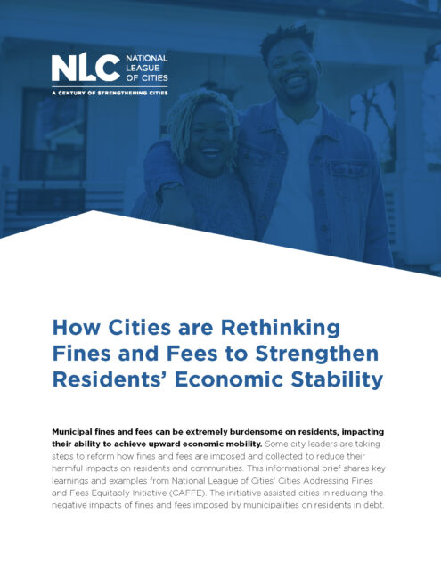 Debt collection practices used by cities that do not take into account residents’ ability to pay can further exacerbate this severe strain and can threaten the economic mobility of individuals. The economic instability resulting from fines and fees can have long-term detrimental impacts on families, creating barriers to employment, housing, food access, medical care, and overall wellbeing. This informational brief shares key learnings and examples from the National League of Cities’ Cities Addressing Fines and Fees Equitably Initiative (CAFFE). The initiative assisted cities in reducing the negative impacts of fines and fees imposed by municipalities on residents in debt.